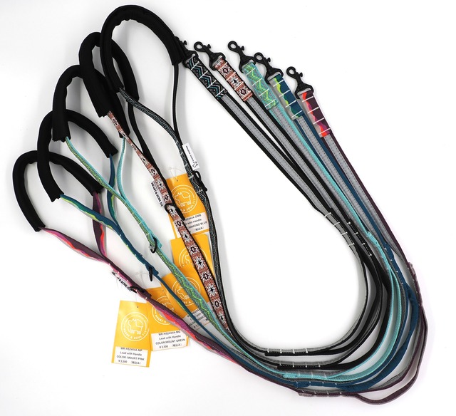 ハート&ソウル111から新登場のドッグリード with ハンドルです。ワンちゃんとのお散歩をより安全で快適にするためのアイテムとしておすすめです。中間部分には20cmの便利なハンドルが付いており、急な動きにも素早く対応できます。手元のハンドルはソフトなネオプレーン生地で作られており、取り外してお洗濯も可能です。さらに、ハンドル付近のDリングにはトイレ袋ポーチなどを簡単に取り付けられ、便利さが増しています。 テープ裏面にリフレクターをテープを縫い付けているので、夜間のお散歩でも安心してお使いいただけます。カラフルで楽しい柄のテープは、ワンちゃんとのお散歩を一層楽しく演出します。愛犬との絆を深めるための必需品です! カラー:MOUNT GREEN(マウントグリーン)、MOUNT PINK(マウントピンク)、ETHNIC BROWN(エスニックブラウン)、DIAMOND BLUE(ダイヤモンドブルー)、DIAMOND GREEN(ダイヤモンドグリーン) 長さ:120cm(ハンドルを伸ばした状態) 幅:2cm お散歩の時間をより楽しく、快適に過ごすためのベストパートナーです!あなたと愛犬の日常を明るくサポートします。 離島のお客様へ(沖縄県以外) 沖縄県以外の下記の離島にお住まいのお客様は別途送料を頂いております。詳しくはお問い合わせください。 No International orders available.(海外発送は行っていません)
