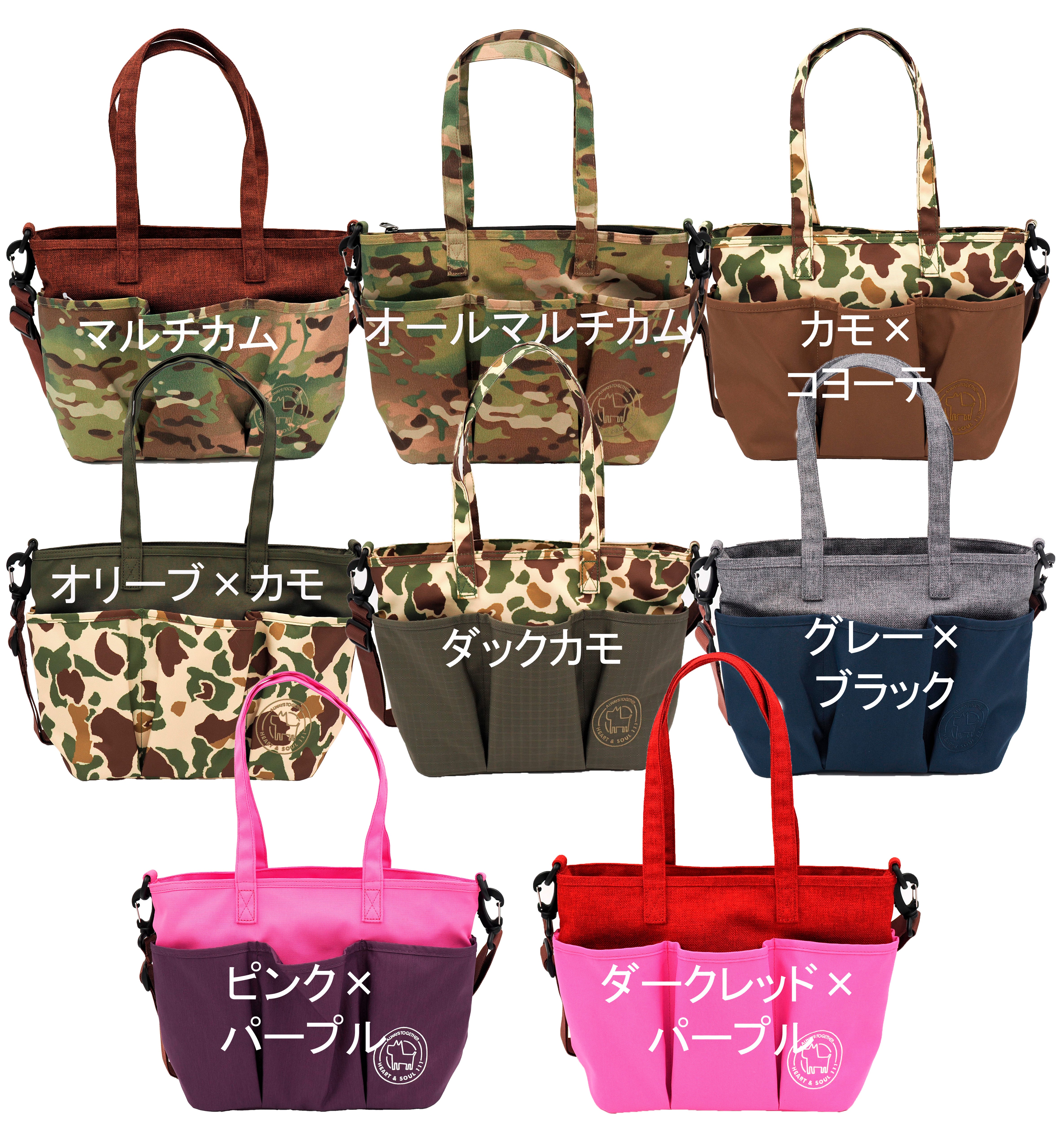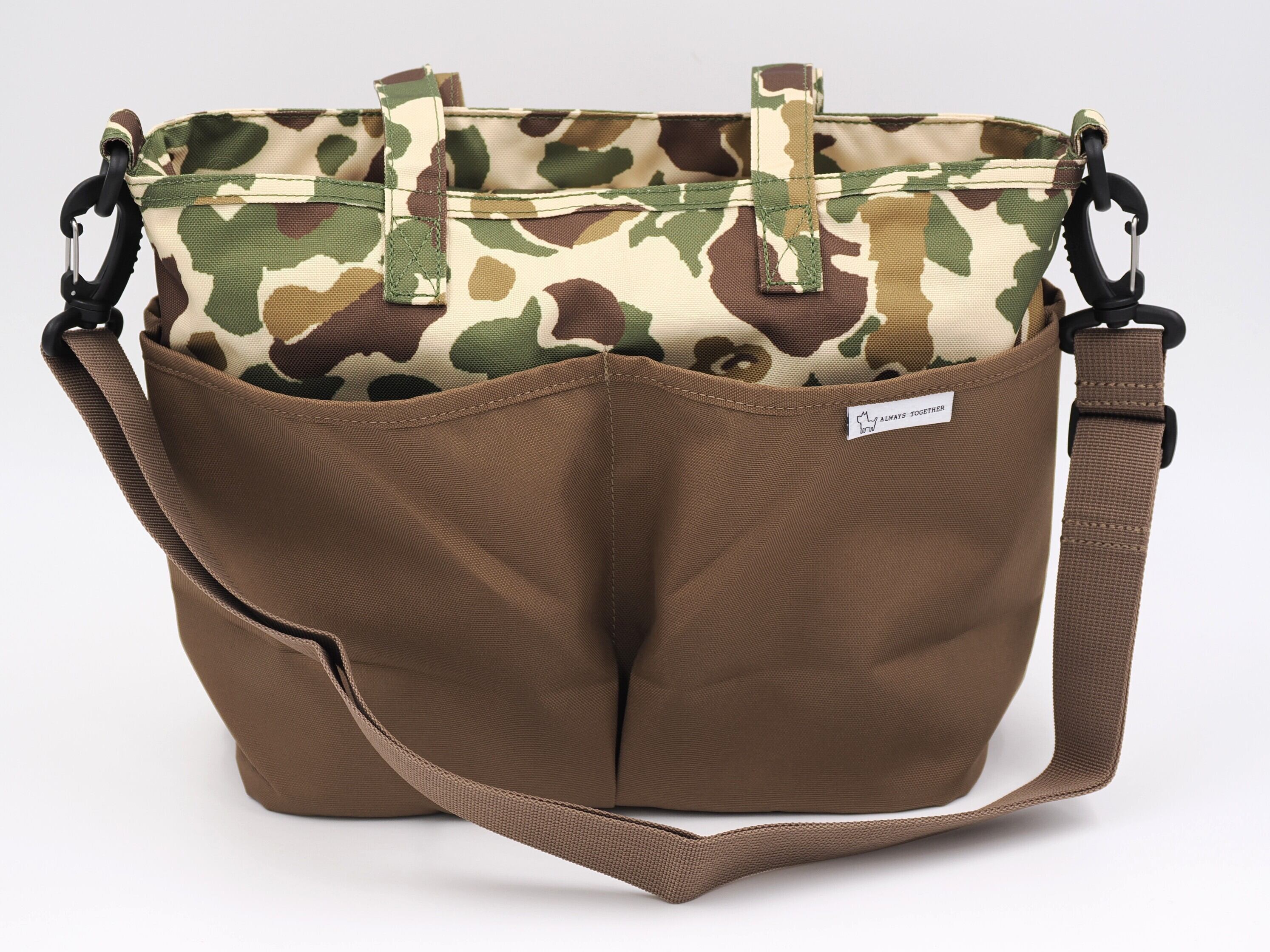 人気のお散歩マルチバッグの【新色・刺繍バージョン】です。【プリントバージョン】で一番人気だったマルチカムに加えて、新しいダッグハンターカモが仲間入りしました。