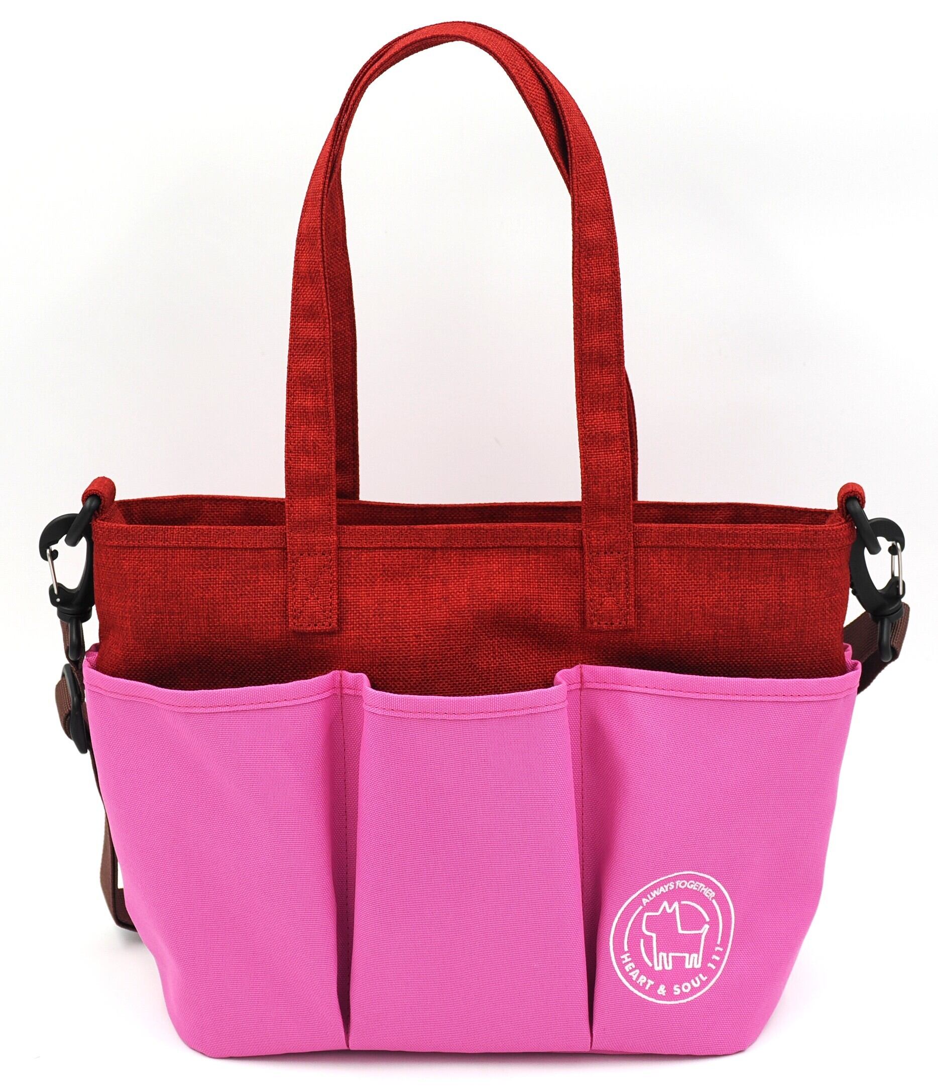 ワンちゃんとのお散歩をより快適にしてくれる「お散歩マルチバッグ」です。多機能なデザインで、収納スペースも豊富で使い勝手抜群。お散歩の必需品をスッキリと整理することができます。外側に配置した3つの正面のポケットは、それぞれ500mlペットボトルが入るので、ワンちゃんのお水と飼い主さんの飲み物などを入れることができます。ファスナーで閉じることができ、内側には豊富なポケットをレイアウト。また、両サイドにも500mlのペットボトルが入ります。取り外し可能なショルダーストラップもついているので、シーンに合わせた使い方が可能です。仕様は全て共通です。オリジナルのメッシュポーチに入れてお届けします。