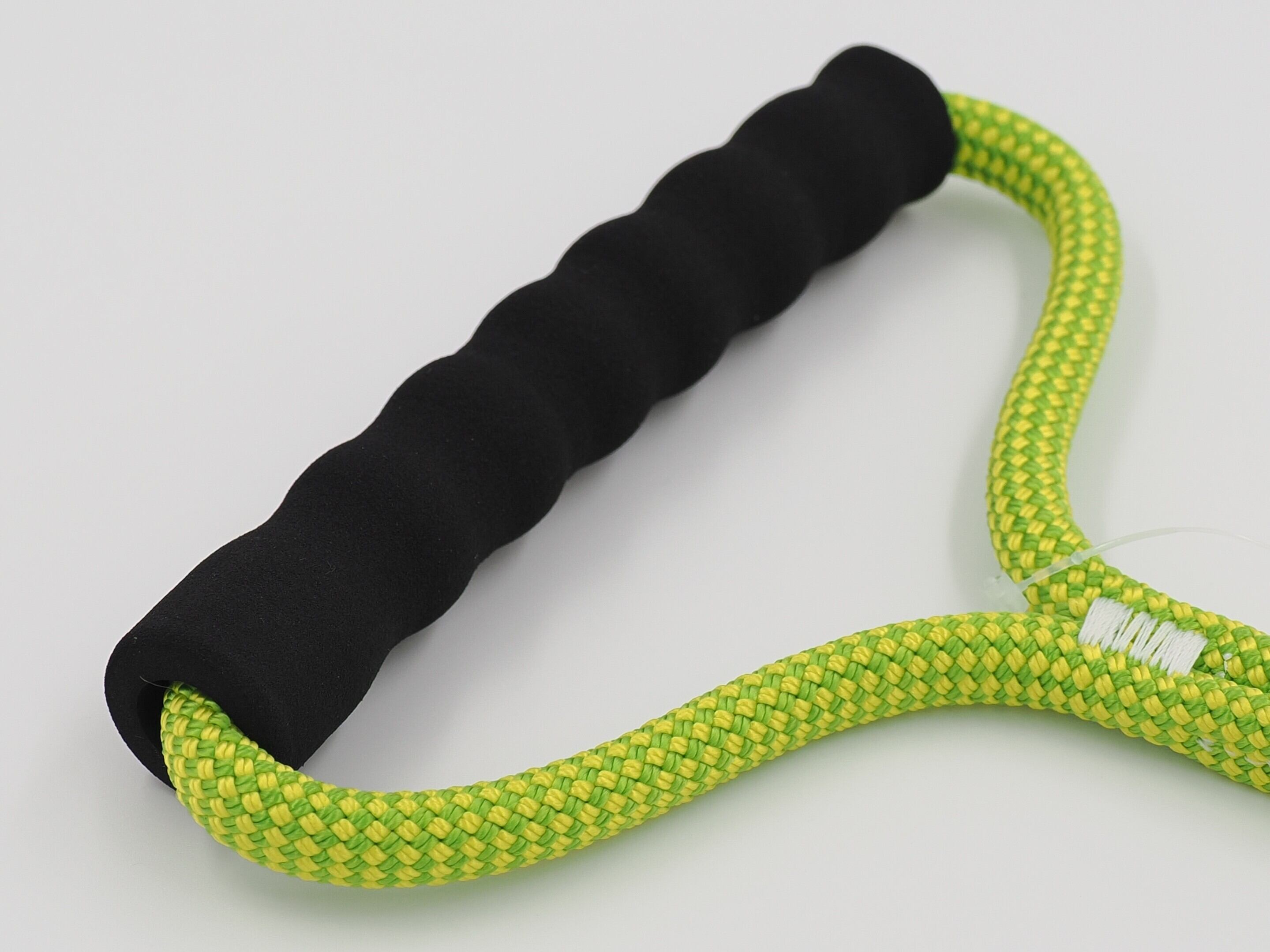 ハート&ソウル111から新登場のドッグリード ロープ(10mm)です。素材が柔らかく、荷重がかかると僅かに伸びる「ダイナミックロープ」を使用しているので、力の強い大型犬や元気に動き回るワンちゃんとのお散歩をより安全で快適にするためのアイテムとしておすすめです。手元のハンドルは握りやすいように波状に形成されたフォームグリップを採用しています。高機能ミシンを使い、丈夫なロープをシンプルかつ頑丈に、美しく縫い合わせています。