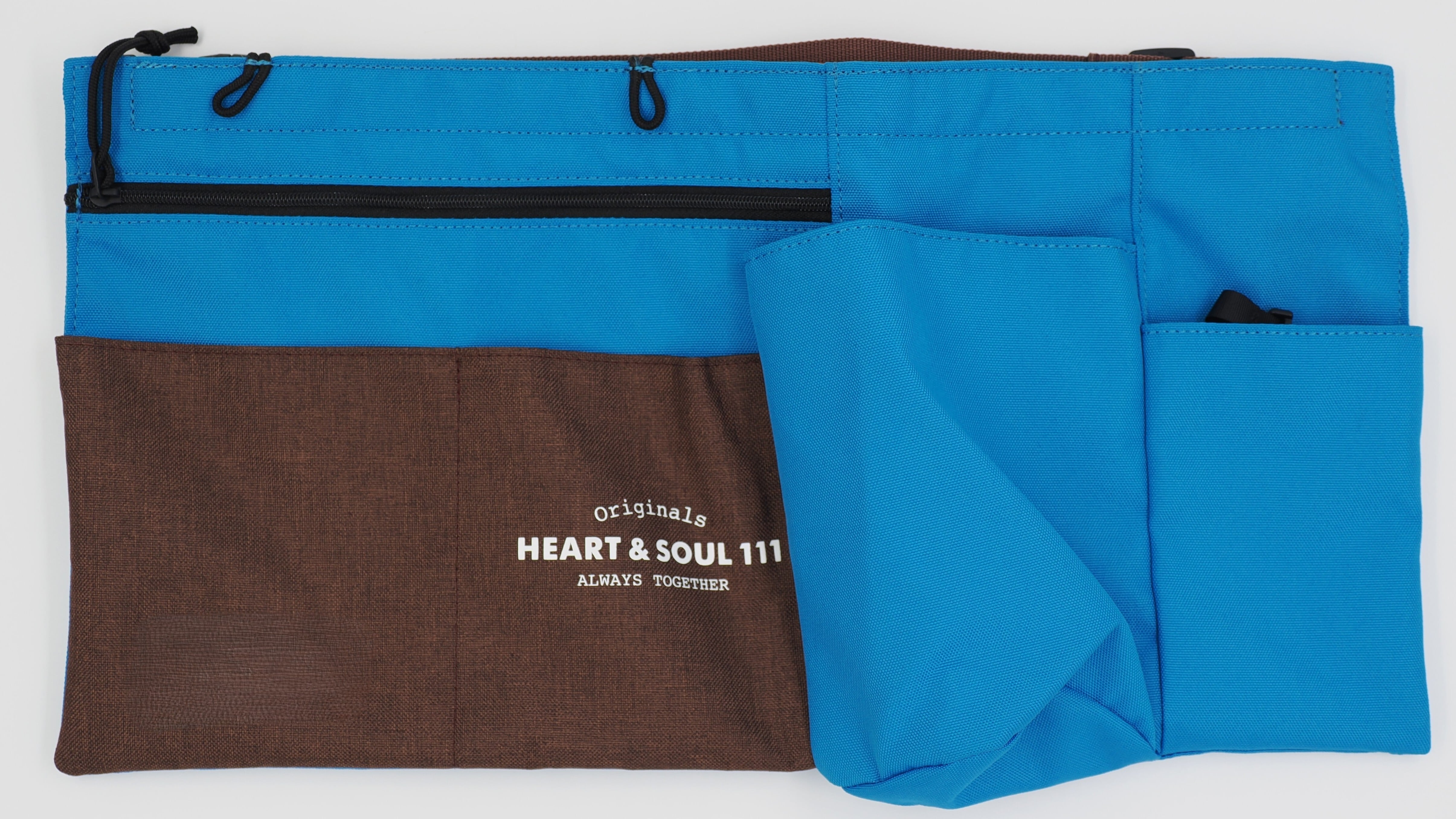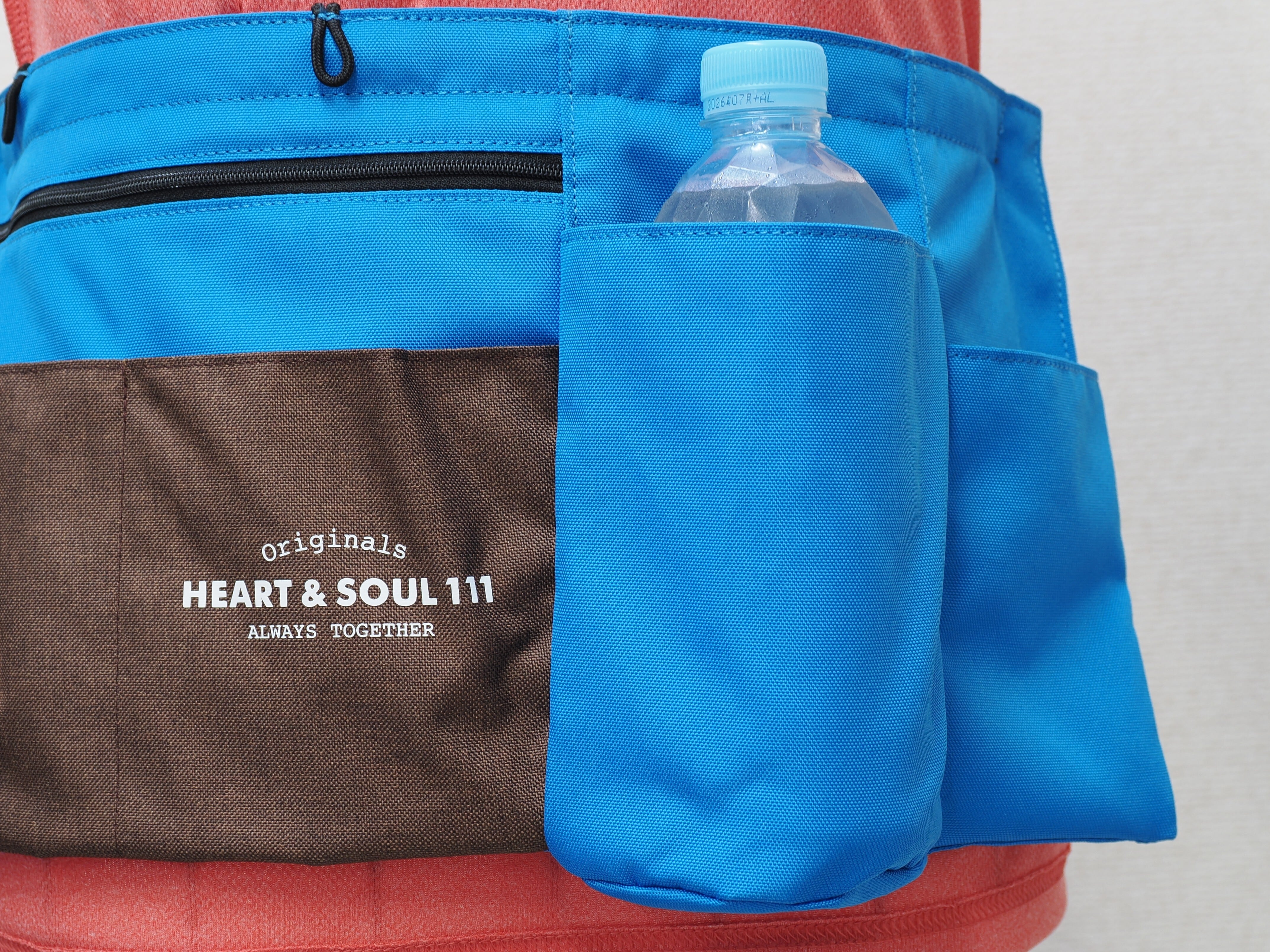 ワンちゃんとのお出かけをもっと快適にするエプロンタイプの「ウエストポーチ with DOG」です。500mlのペットボトルホルダー、スマホポケットを完備。ファスナーのついた内側のポケットには大事なお財布も入ります。手軽にアクセスできるので、おやつなどを素早く取り出せる便利さも兼ね備えています。また、庭のお手入れなどのときのツール入れとしても活躍します。仕様は全て共通です。オリジナルのメッシュポーチに入れてお届けします。